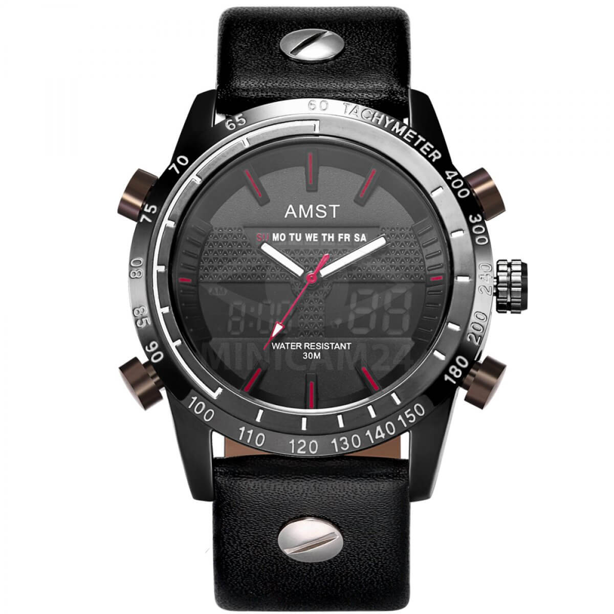 Черные наручные часы с подсветкой, отображающие время в комбинированном формате: на одном циферблате есть аналоговый стрелочный вариант и LED-дисплей. Часы прошли сертификацию по военному образцу MIL-PRF-46374G, они устойчивы к перепадам температур, обладают антимагнитными и антикоррозийными свойствами. Ремешок изготовлен из качественной натуральной кожи. Часы оснащены японским кварцевым механизмом Japan movt. Стекло с антибликовым напылением HARDLEX устойчиво к царапинам, сколам и потертостям.